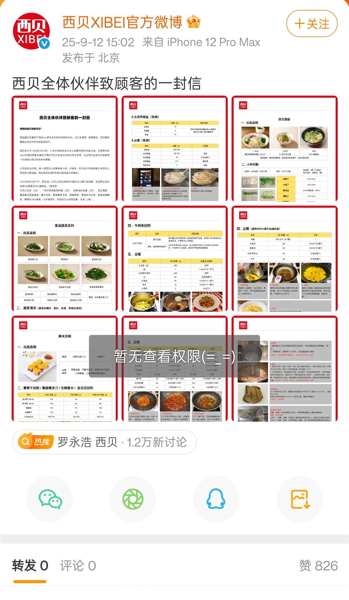 9月12日下午3时许,西贝官方微博发布《致顾客的一封信》,对近日的预制菜争议用42页的篇幅作出详细回应,并对罗永浩当日所食用的菜品制作过程进行公示。