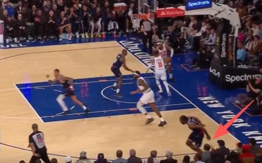 在昨天快船队跟纽约尼克斯队的比赛里,伦纳德在第三节比赛投进了一个中投,随后落地往后退,不小心踩到了尼克斯队主场的场边观众的脚,当时就崴脚了。谨慎起见,快船队主帅泰伦-卢将伦纳德换下场,结果伦纳德还是受伤了。